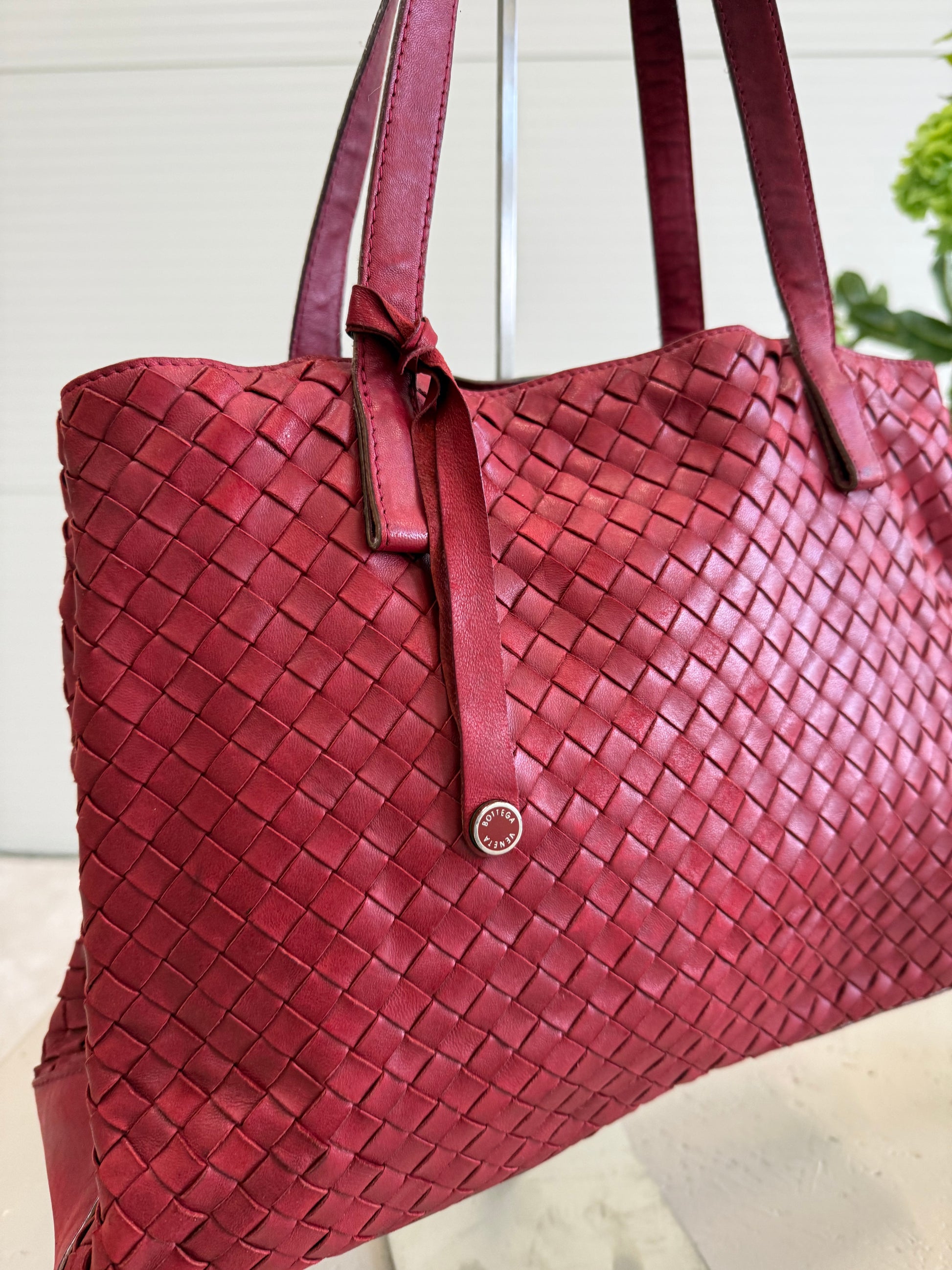 Denne smukke Bottega Veneta shoulder bag er et raffineret eksempel på italiensk håndværk og tidløs elegance. Udført i blødt, rød lammeskind og med det karakteristiske vævede intrecciato-design, forener den luksus og funktion i en klassisk silhuet. Den dybe røde farve tilfører et sofistikeret touch, der løfter ethvert outfit – uanset om det er til hverdag eller en særlig anledning.