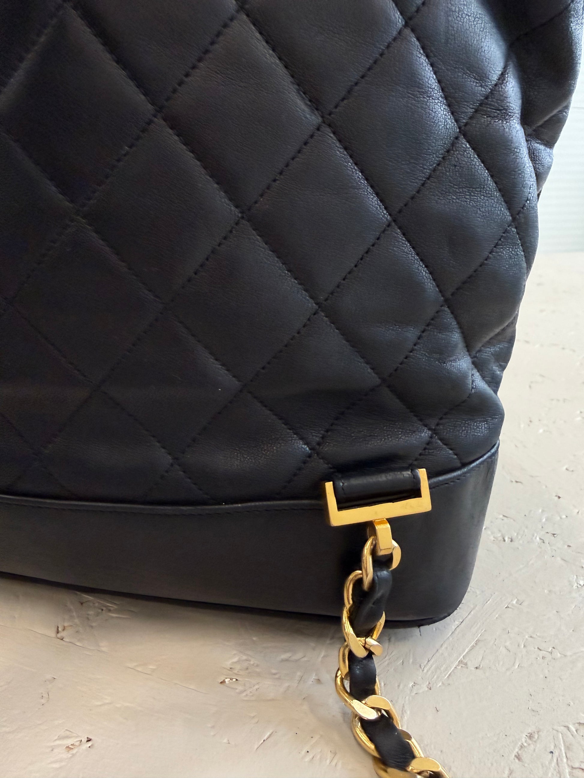 Denne elegante Chanel backpack er et eksklusivt og tidløst fund, fremstillet i blødt, sort kalveskind med klassiske detaljer og smuk guld hardware. Det ikoniske Chanel-design forenes her med en praktisk og rummelig rygsæk, der både er funktionel og stilfuld – perfekt til både hverdag og mere sofistikerede anledninger.