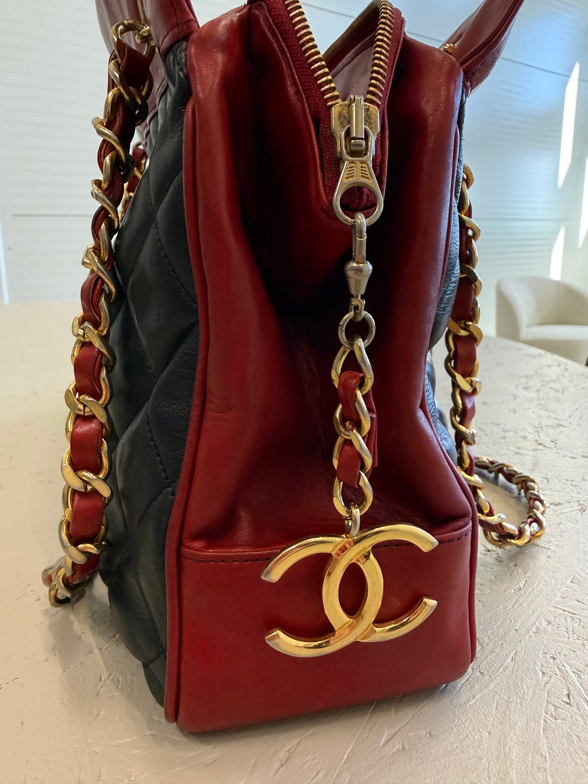 Denne smukke Chanel Shoulder Bag er et sjældent vintagefund, udført i en elegant bicolor-kombination af rød og navy i quiltet design – en iøjnefaldende og sofistikeret taske, der skiller sig ud i enhver garderobe. Den tidløse form og klassiske farvesammensætning gør den perfekt til både hverdagsbrug og særlige lejligheder.