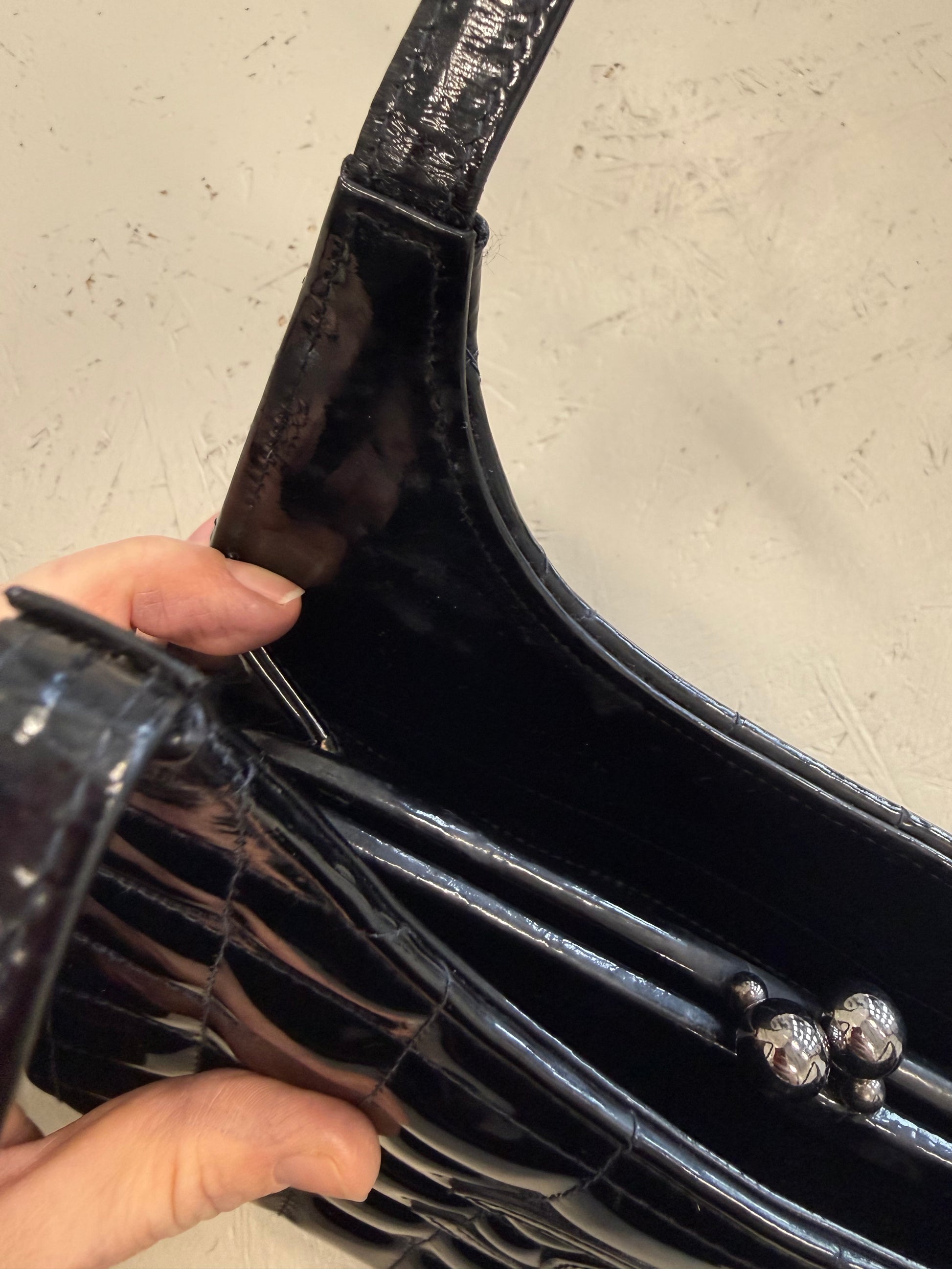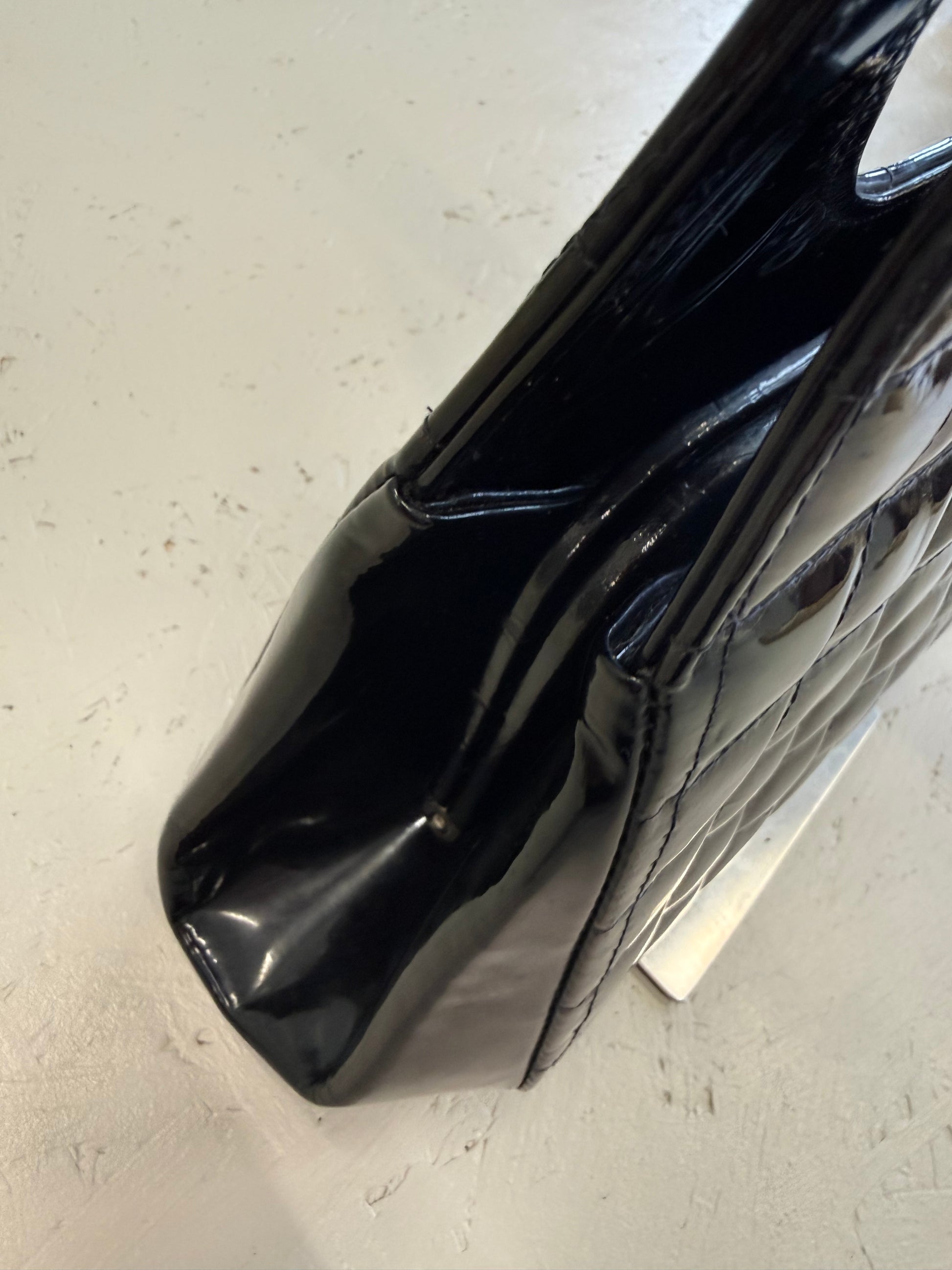 Chanel Black Chocolate Bar Patent Kisslock Shoulder Bag