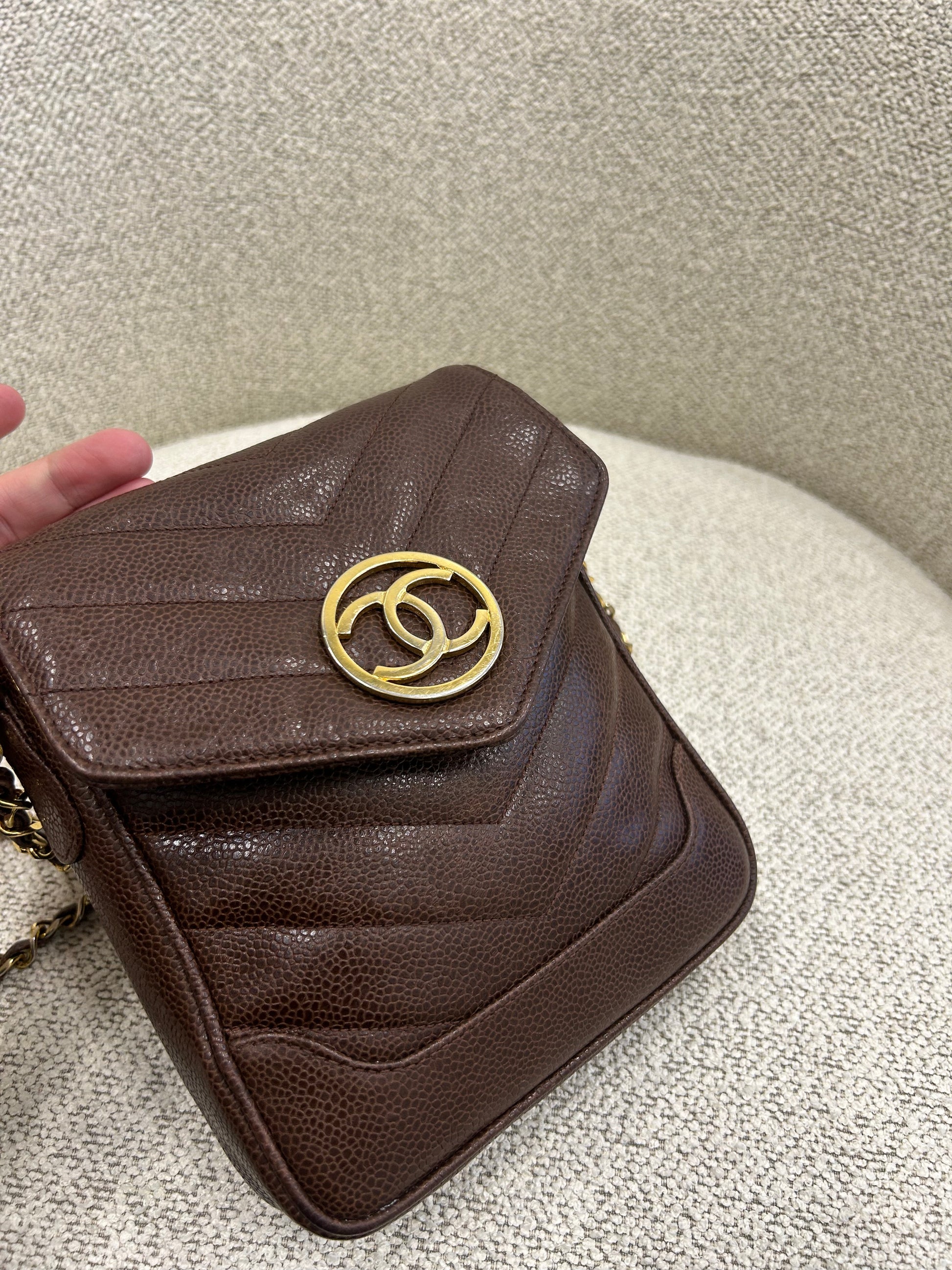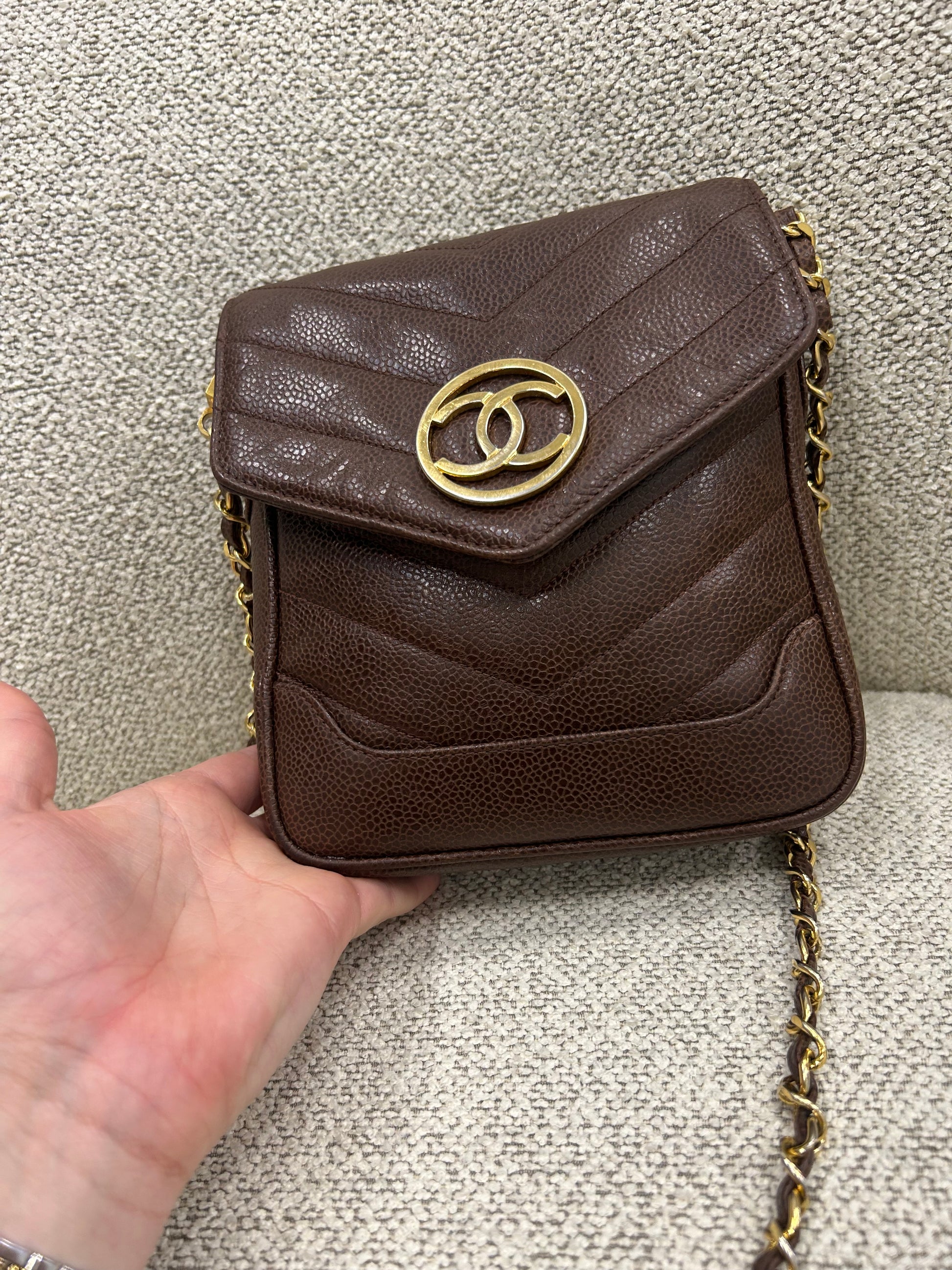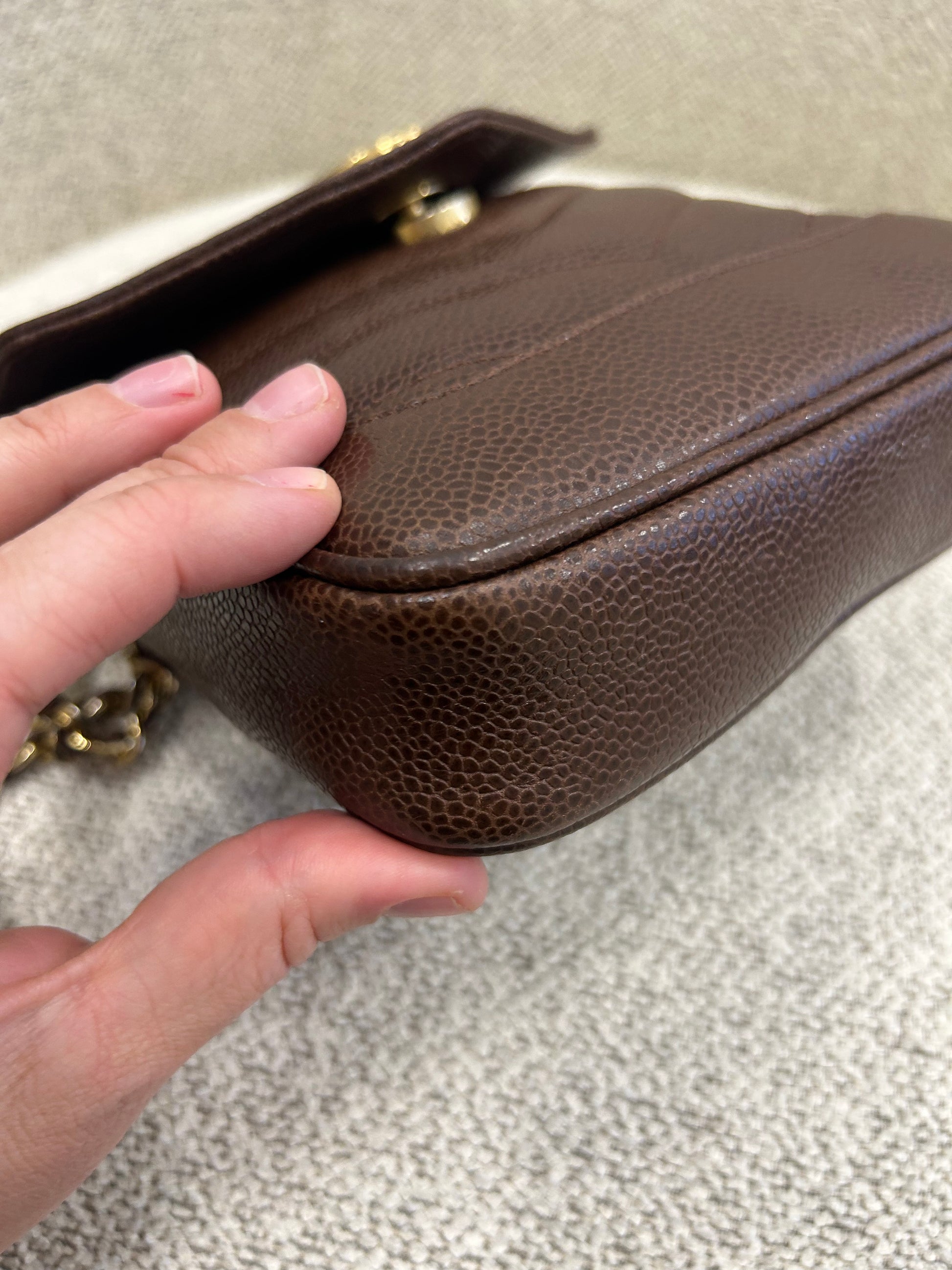 Chanel brown caviar crossbody bag