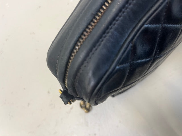 Smuk og klassisk Chanel Camera Bag i blødt sort lammeskind med ikoniske guldfarvede detaljer. Tasken har en tidløs silhuet og er perfekt både til hverdag og særlige lejligheder.