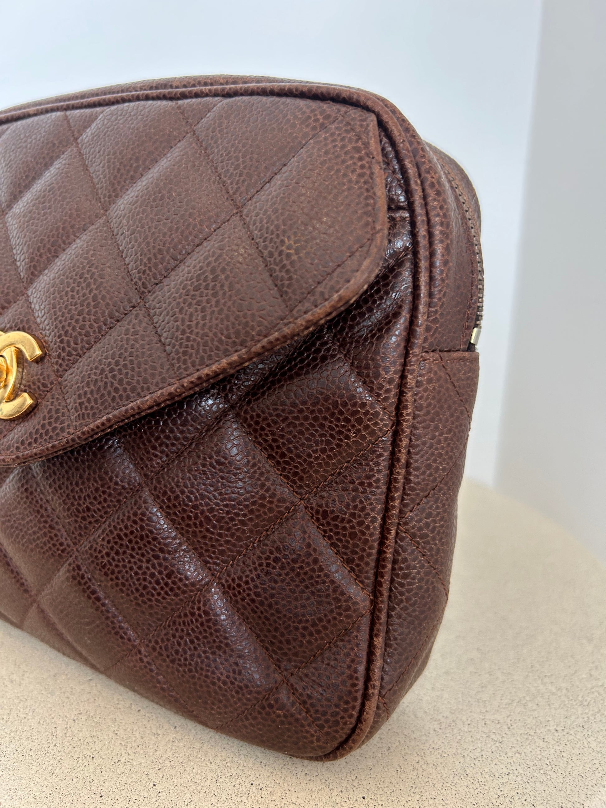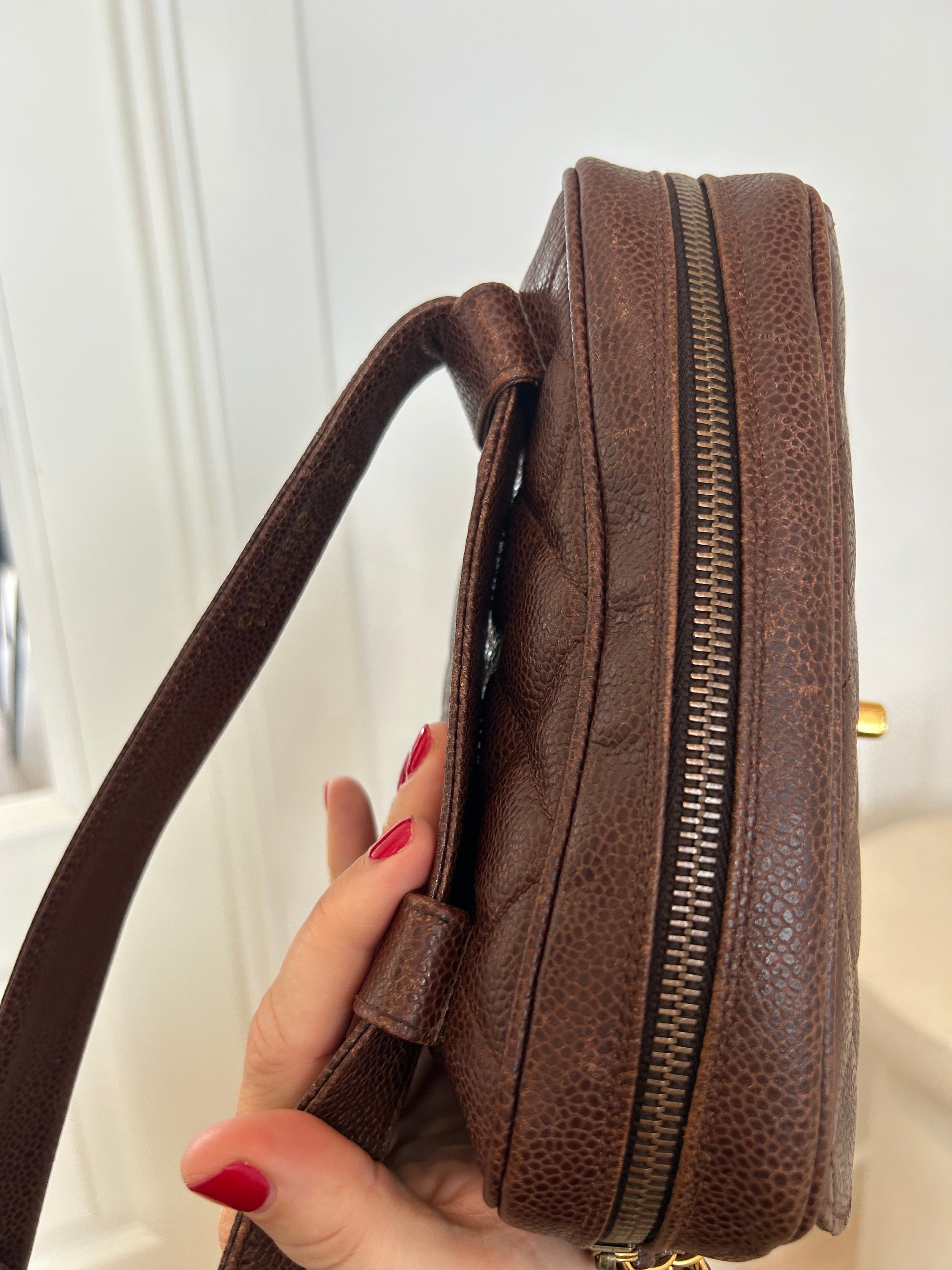 Super smuk og unik Chanel bæltetaske med 24 karat guldbelagt hardware. Denne taske støder vi ikke så ofte på. Den er perfekt til hverdagens gøremål, og til sommerens outfits.