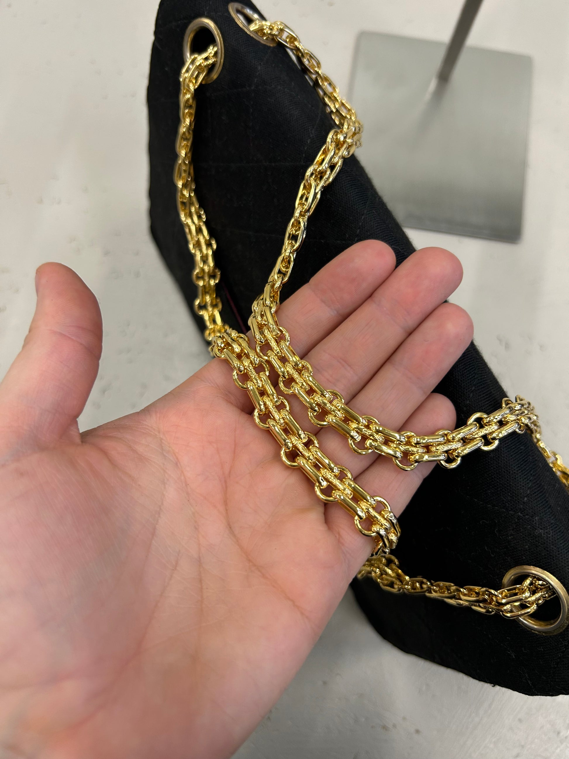 Denne Chanel double flap fremstår i rigtig fin stand med meget få brugsspor. Se gerne billeder for at danne et indtryk. Der er en smule fnuller på tasken, som kameraet fanger ekstra meget. Men det er blot fnuller, som snildt kan komme af med en fnugrulle.