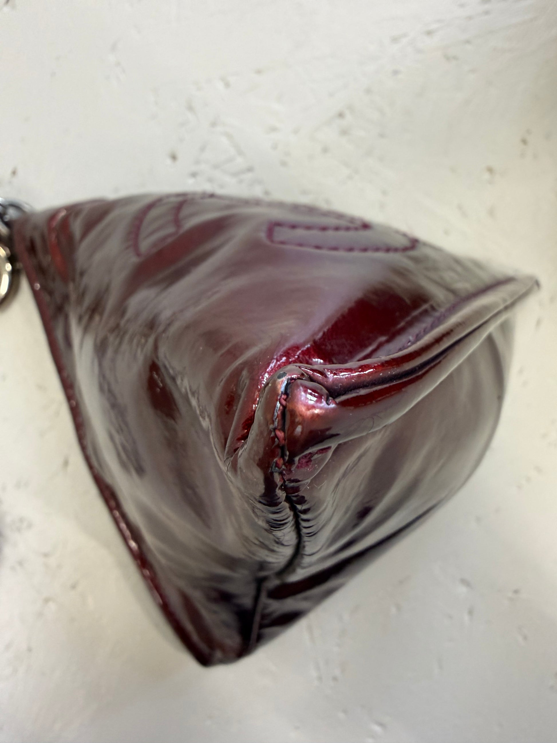 Chanel Dumpling Burgundy Patent Wristlet Bag