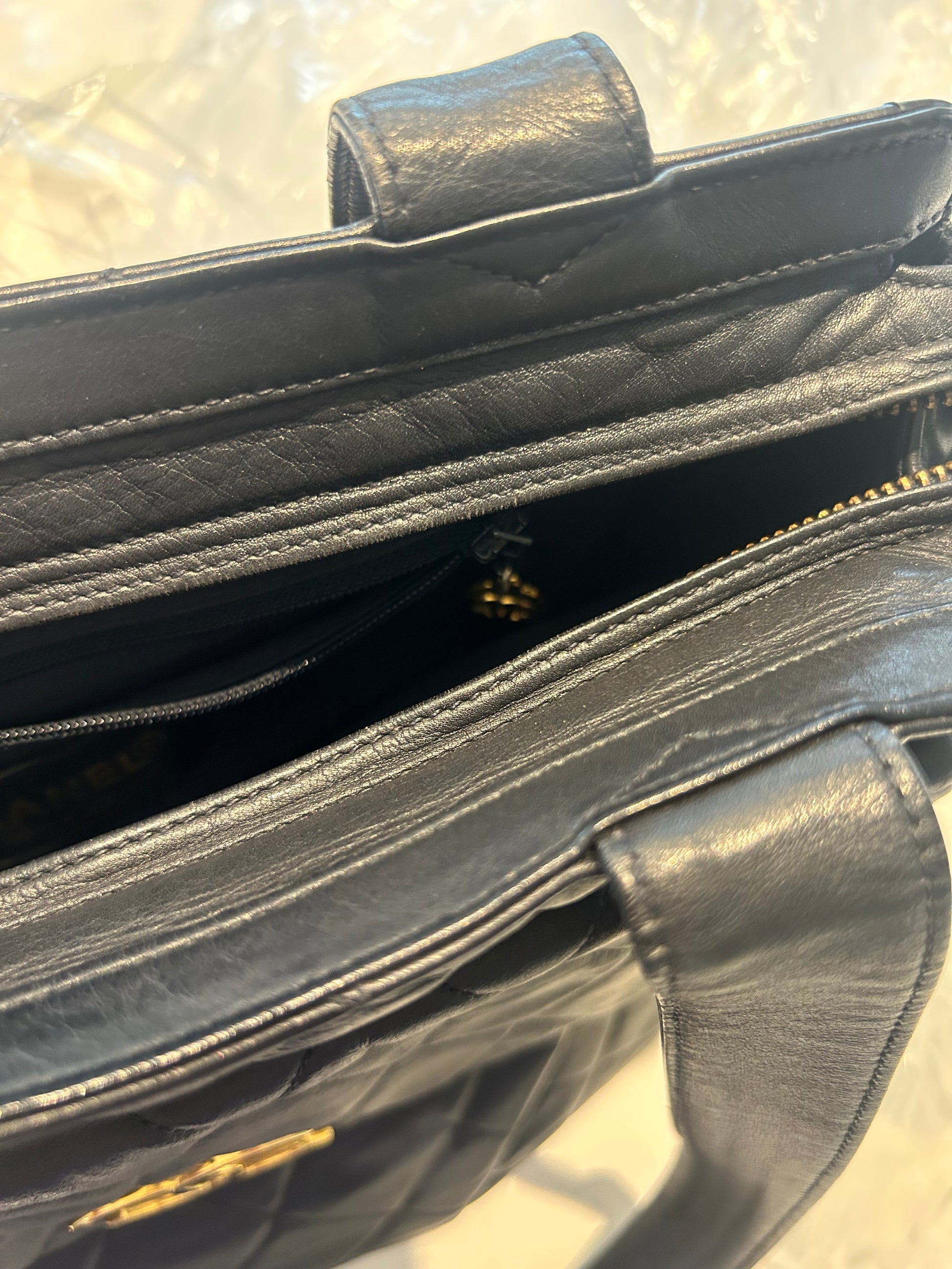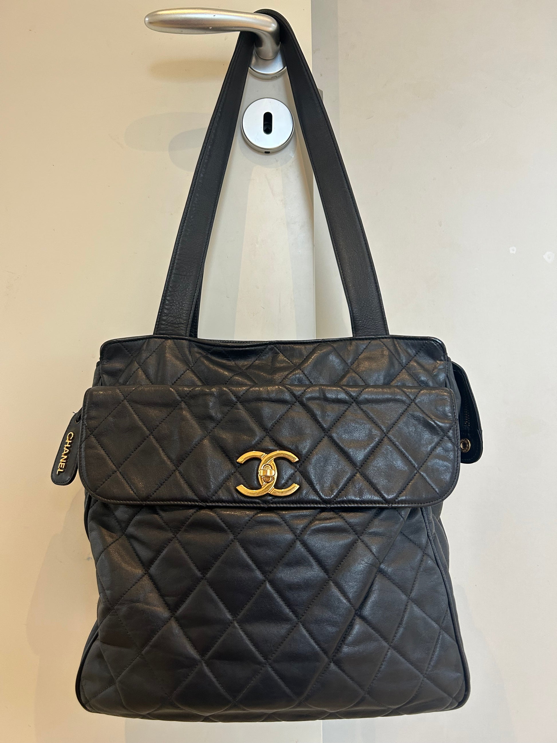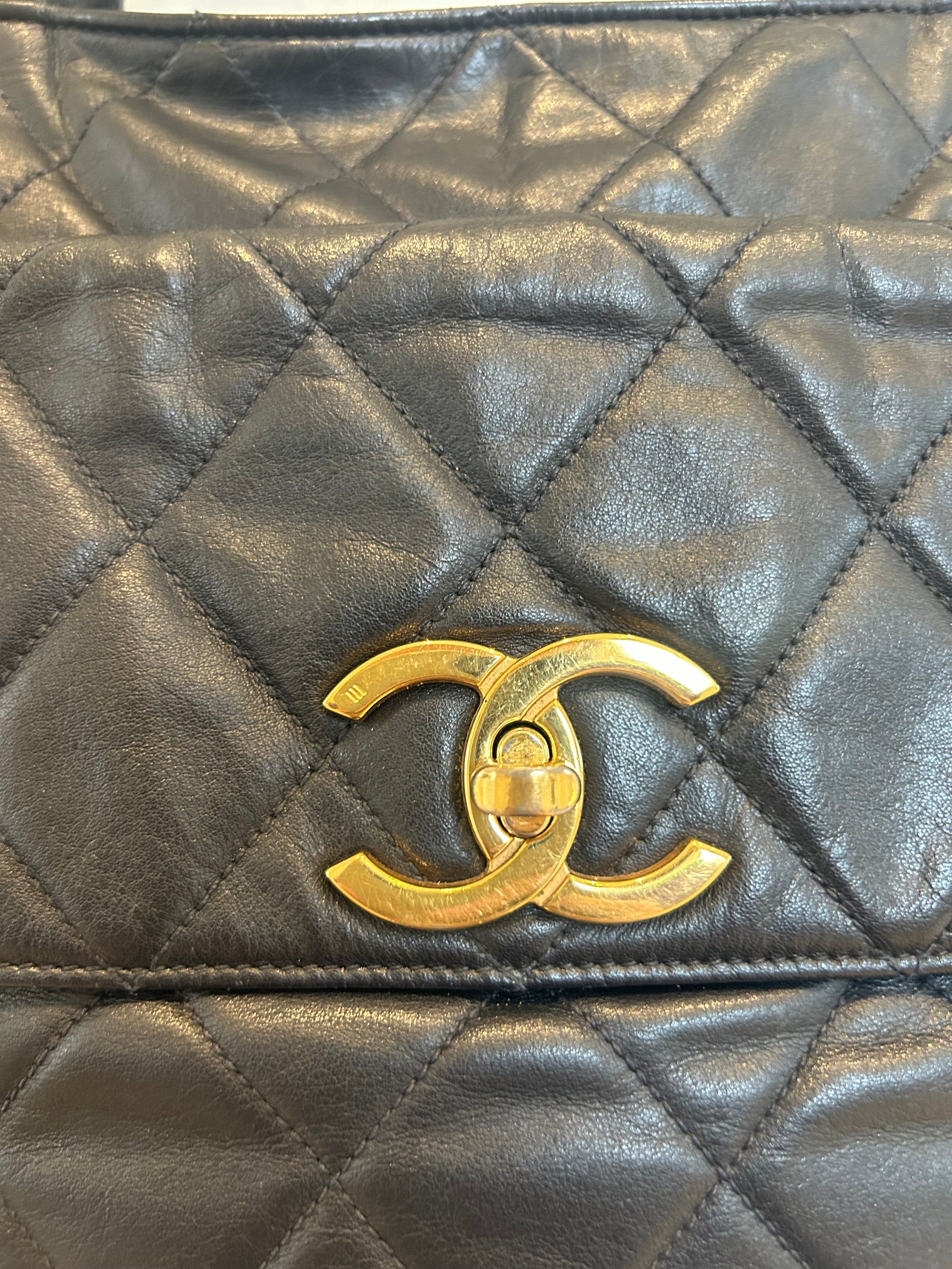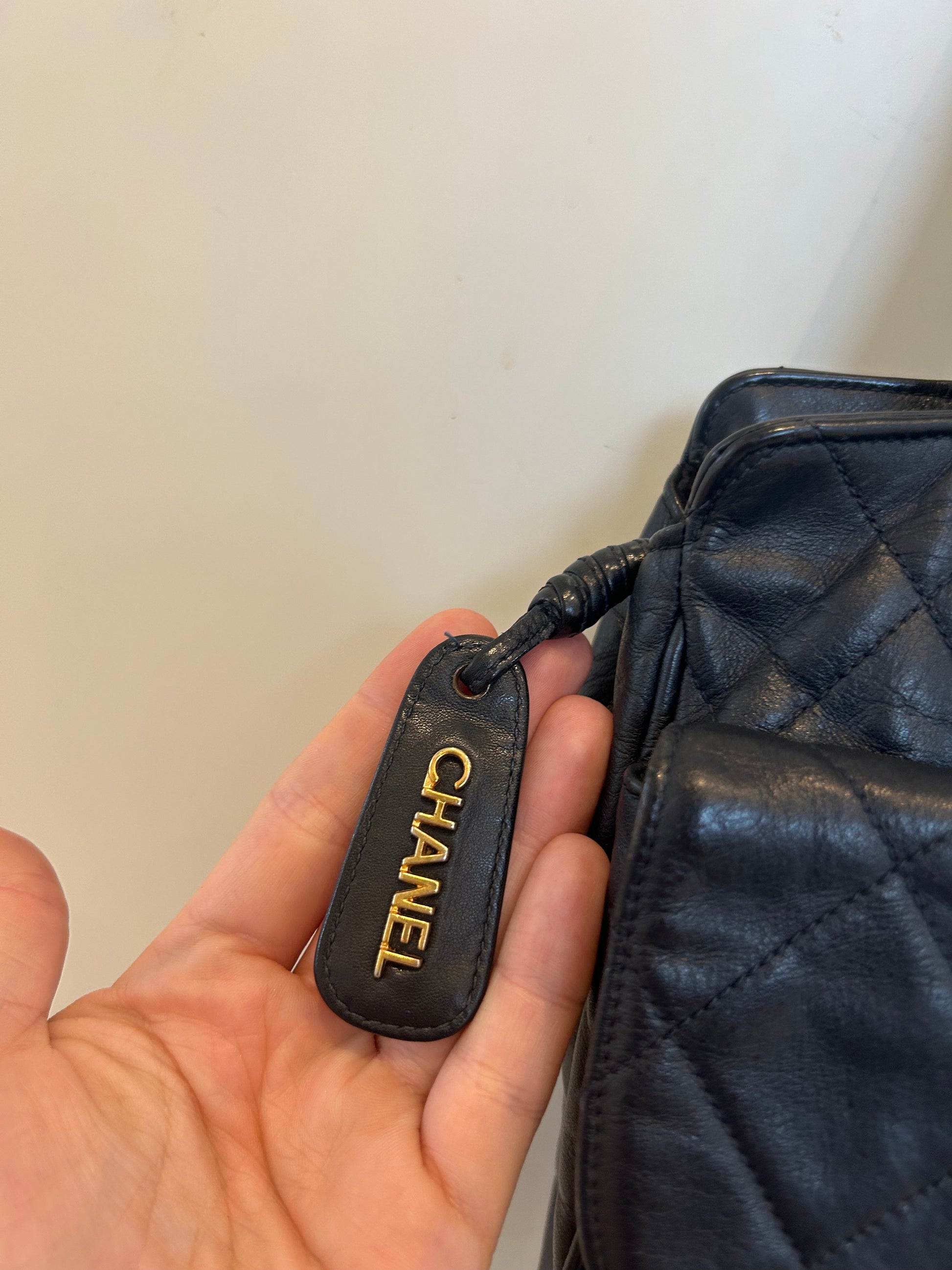 Smuk vintage Chanel taske i lammeskind med 24 karat guldbelagt hardware.