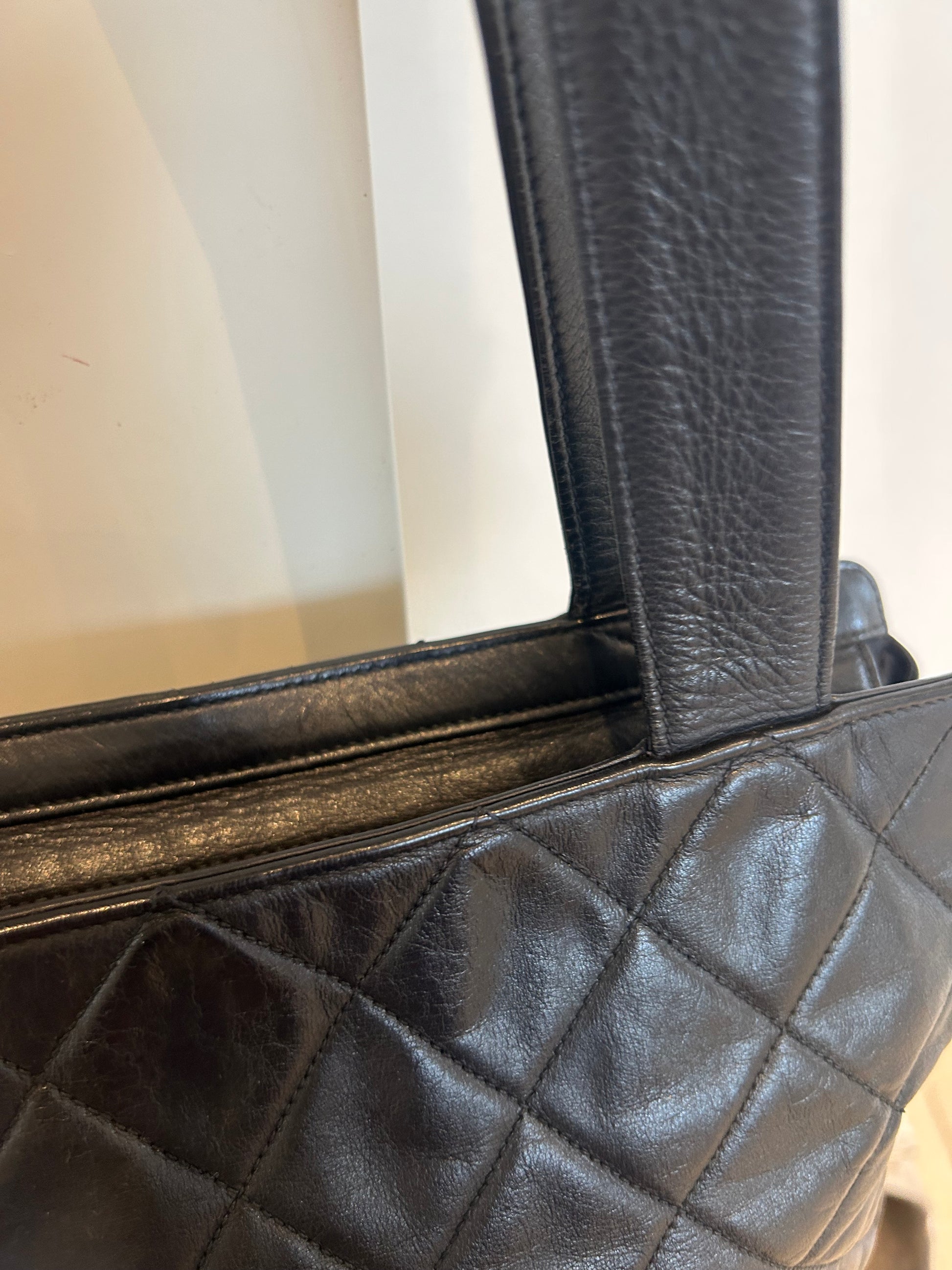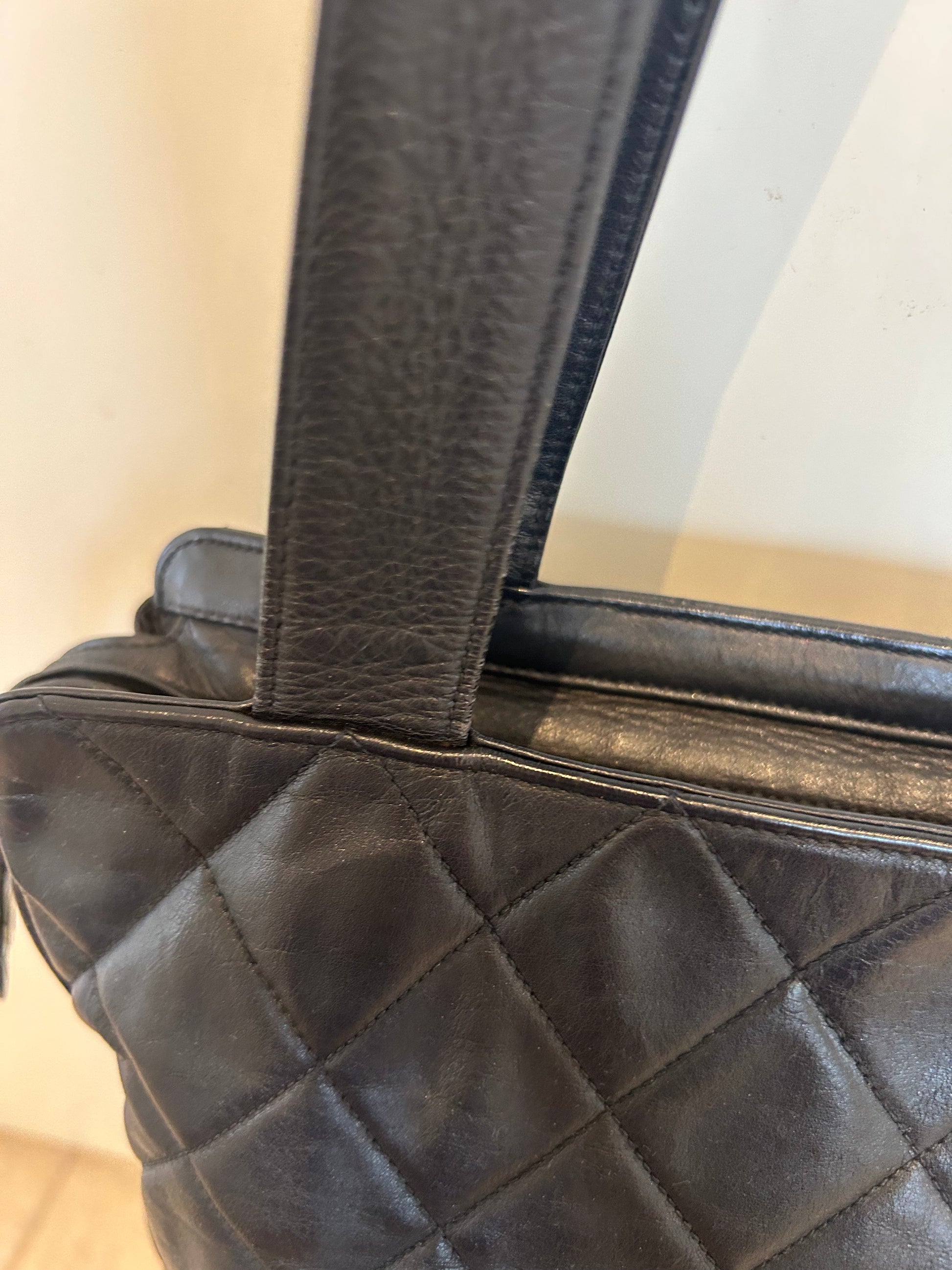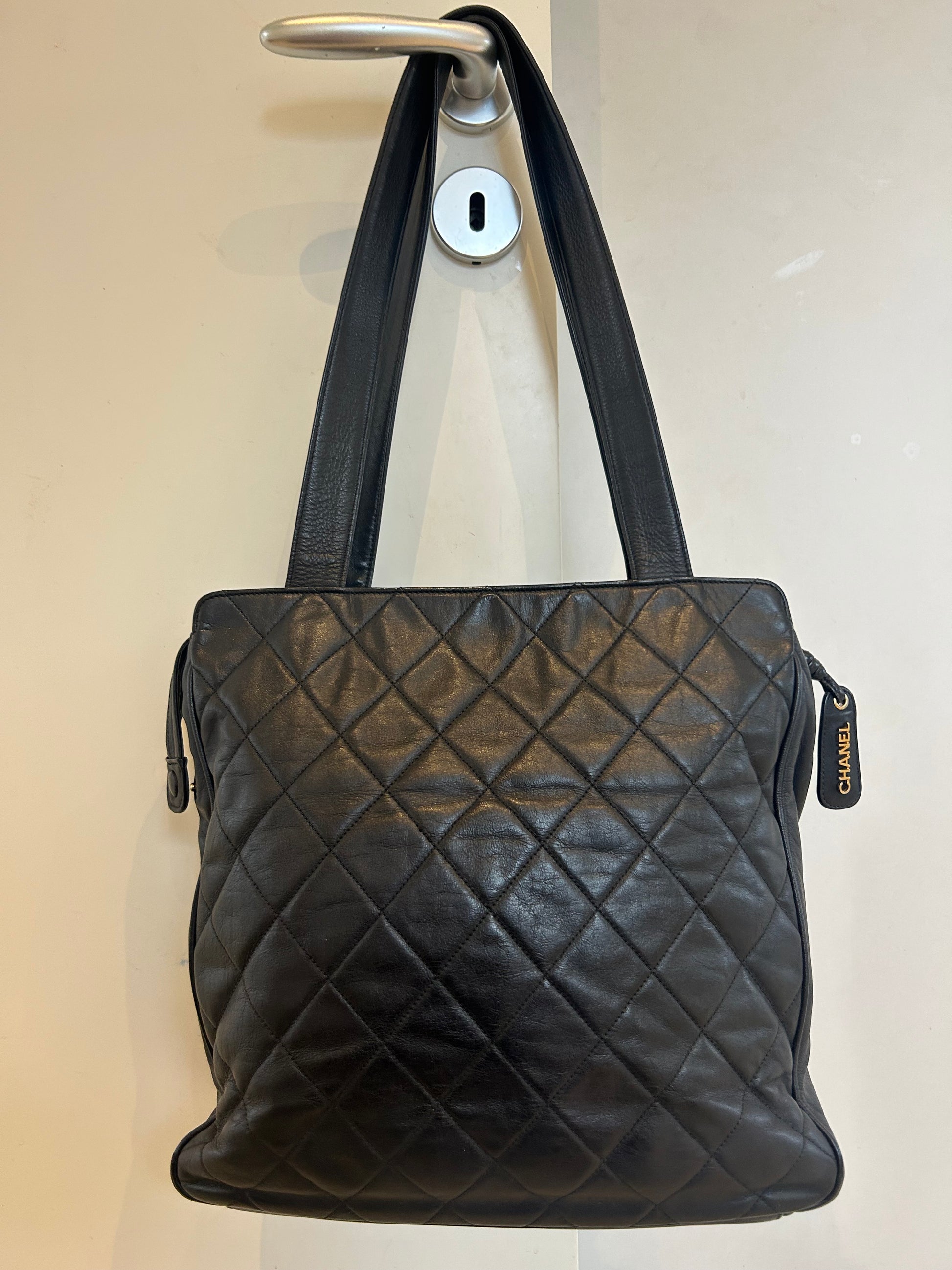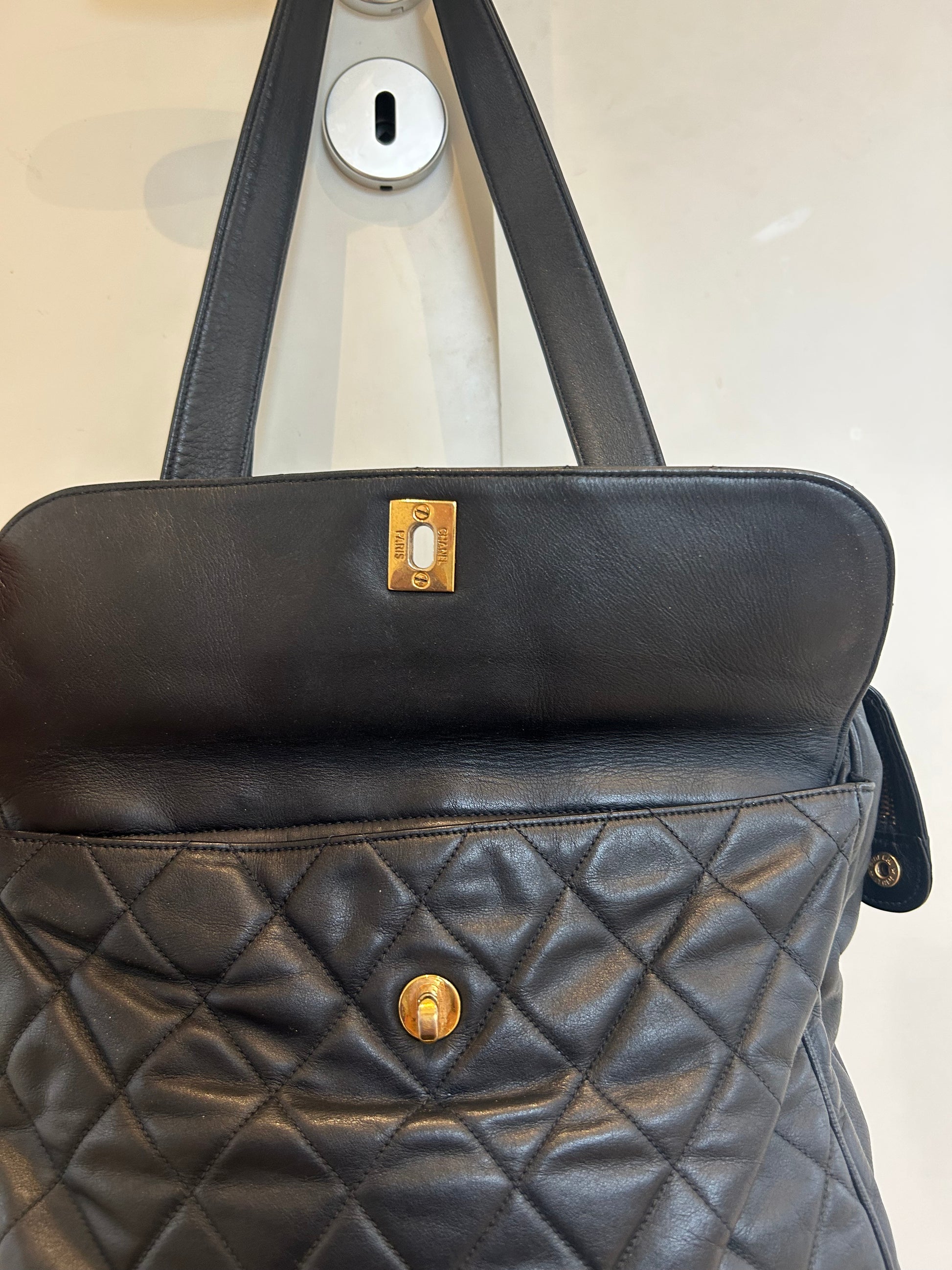 Smuk vintage Chanel taske i lammeskind med 24 karat guldbelagt hardware.