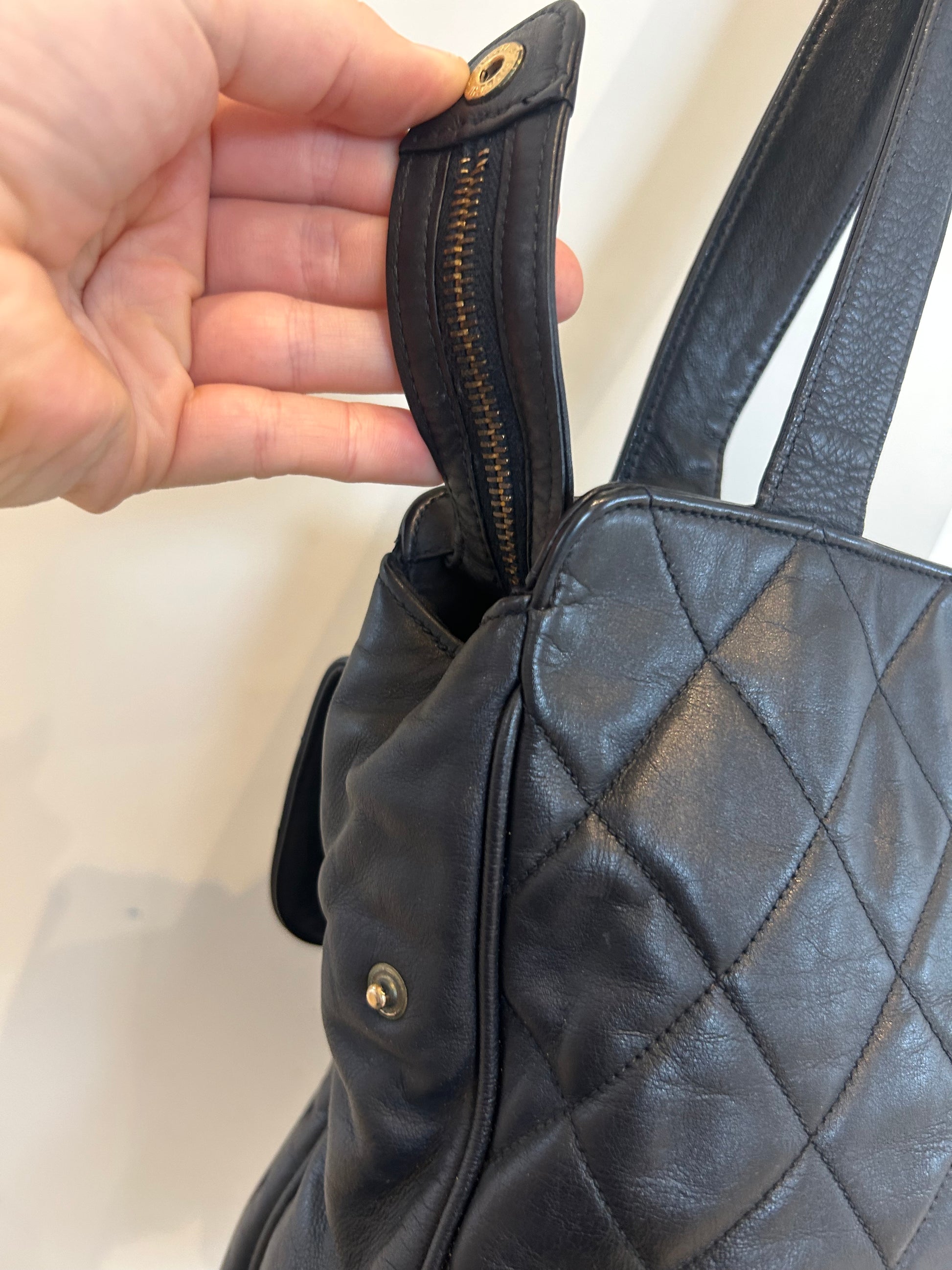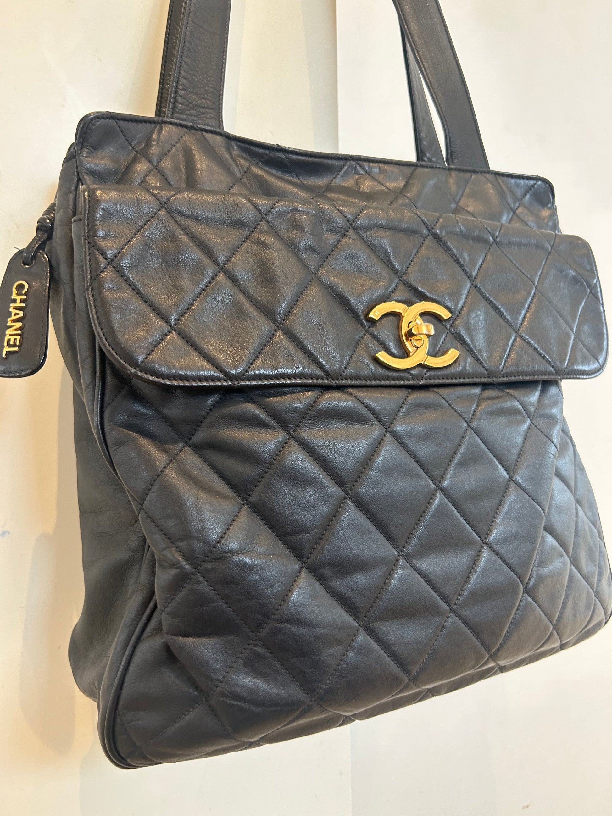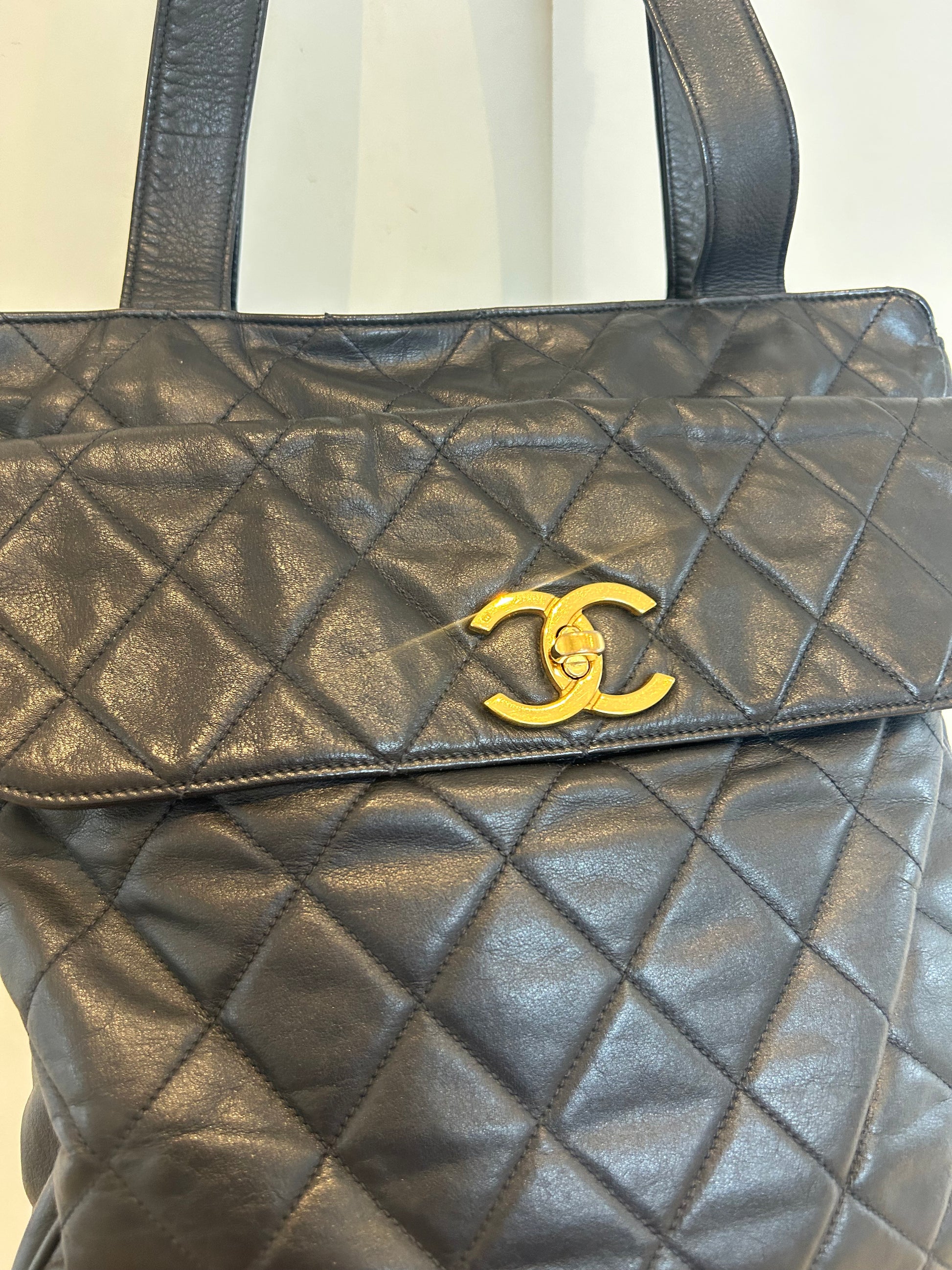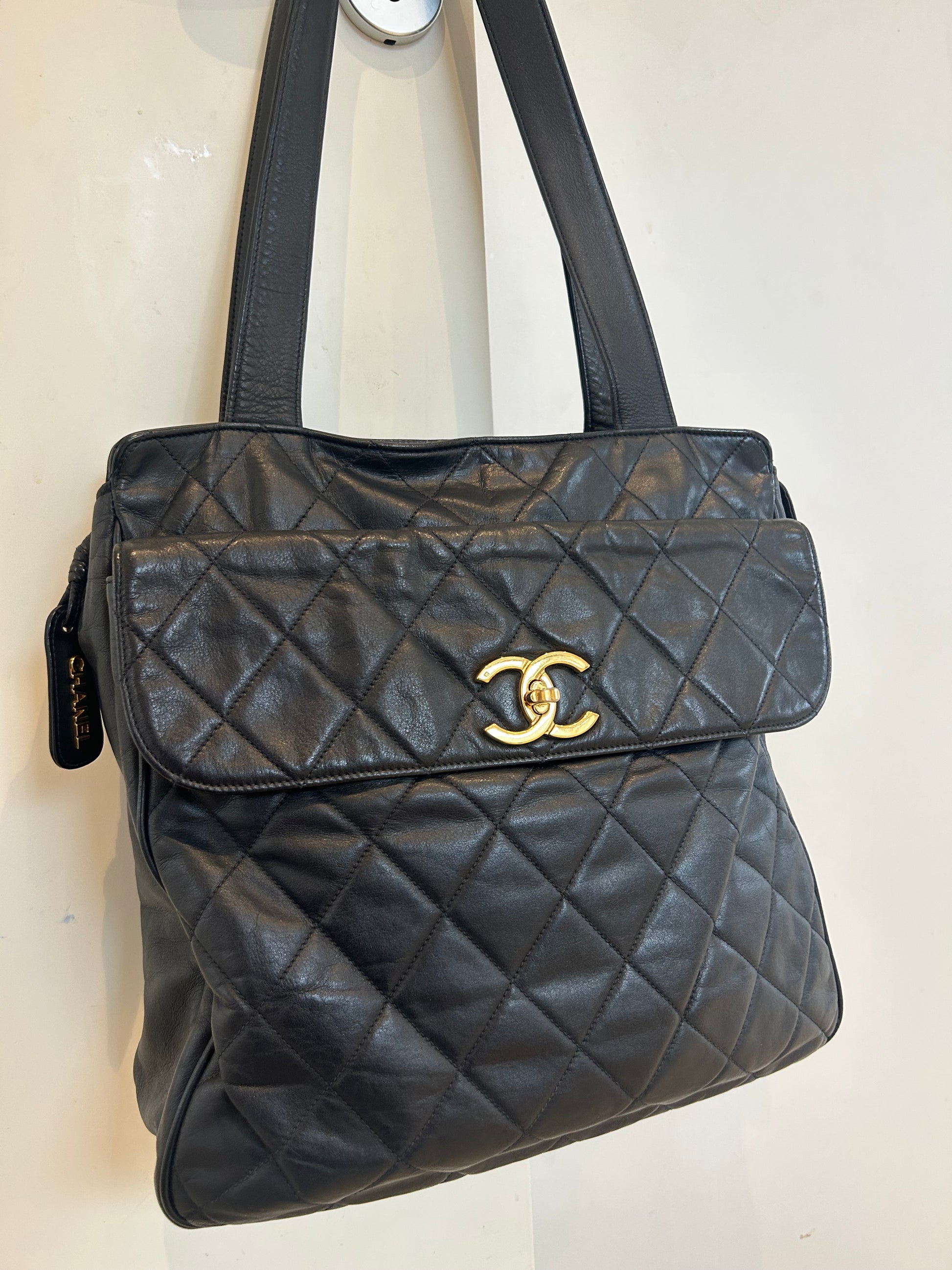 Smuk vintage Chanel taske i lammeskind med 24 karat guldbelagt hardware.