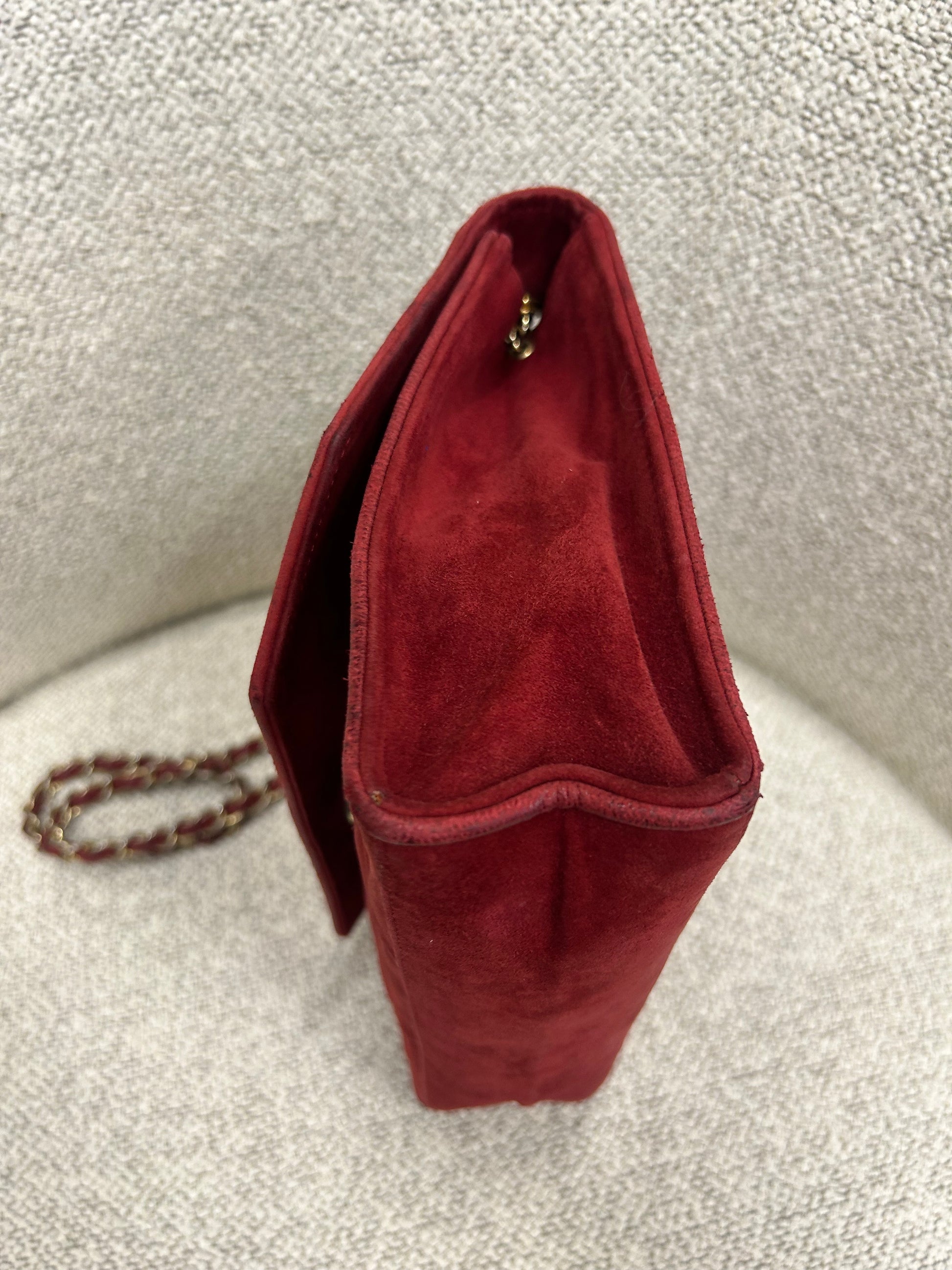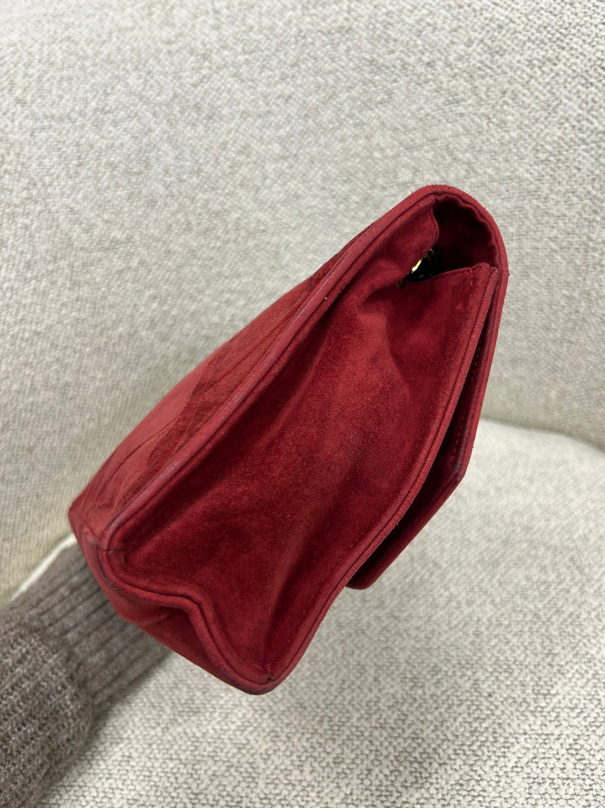 Super smuk Chanel taske i ruskind. Tasken fremstår så fin i den skønneste røde farve.