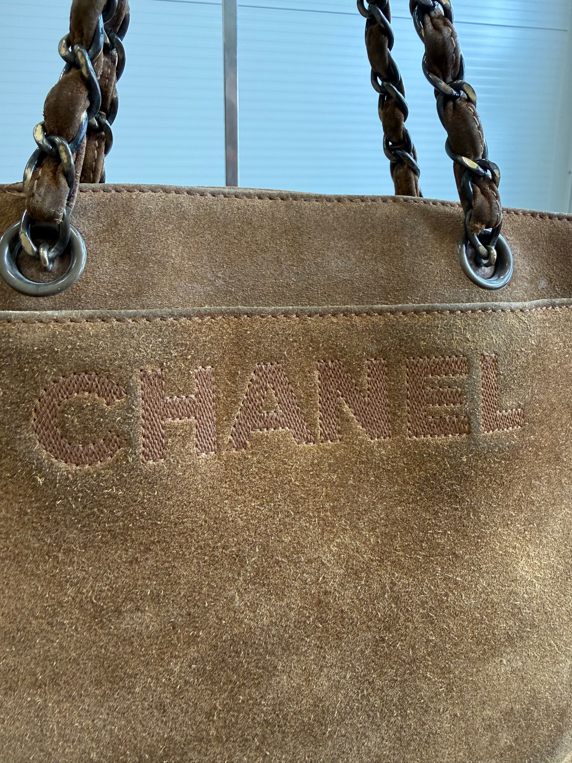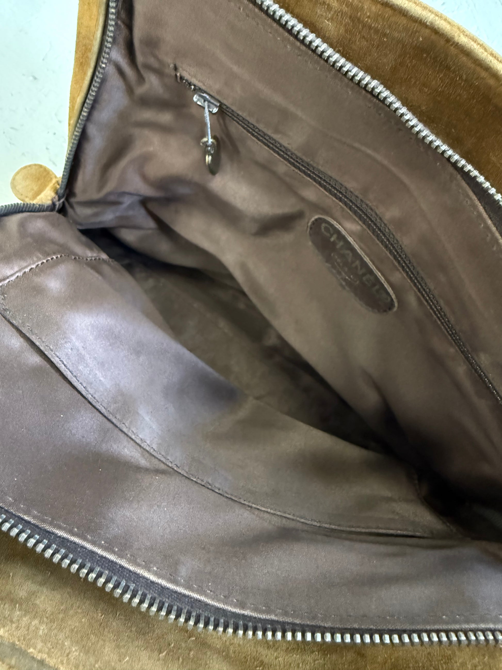 Denne smukke Chanel Shoulder Bag er et sjældent vintagefund, udført i blødt, brunt ruskind med det ikoniske CC-logo diskret præget på fronten – en underspillet, men luksuriøs taske, der emmer af klassisk Chanel-stil. Den enkle tote-form og varme nuance gør den perfekt til både hverdag og mere elegante lejligheder.